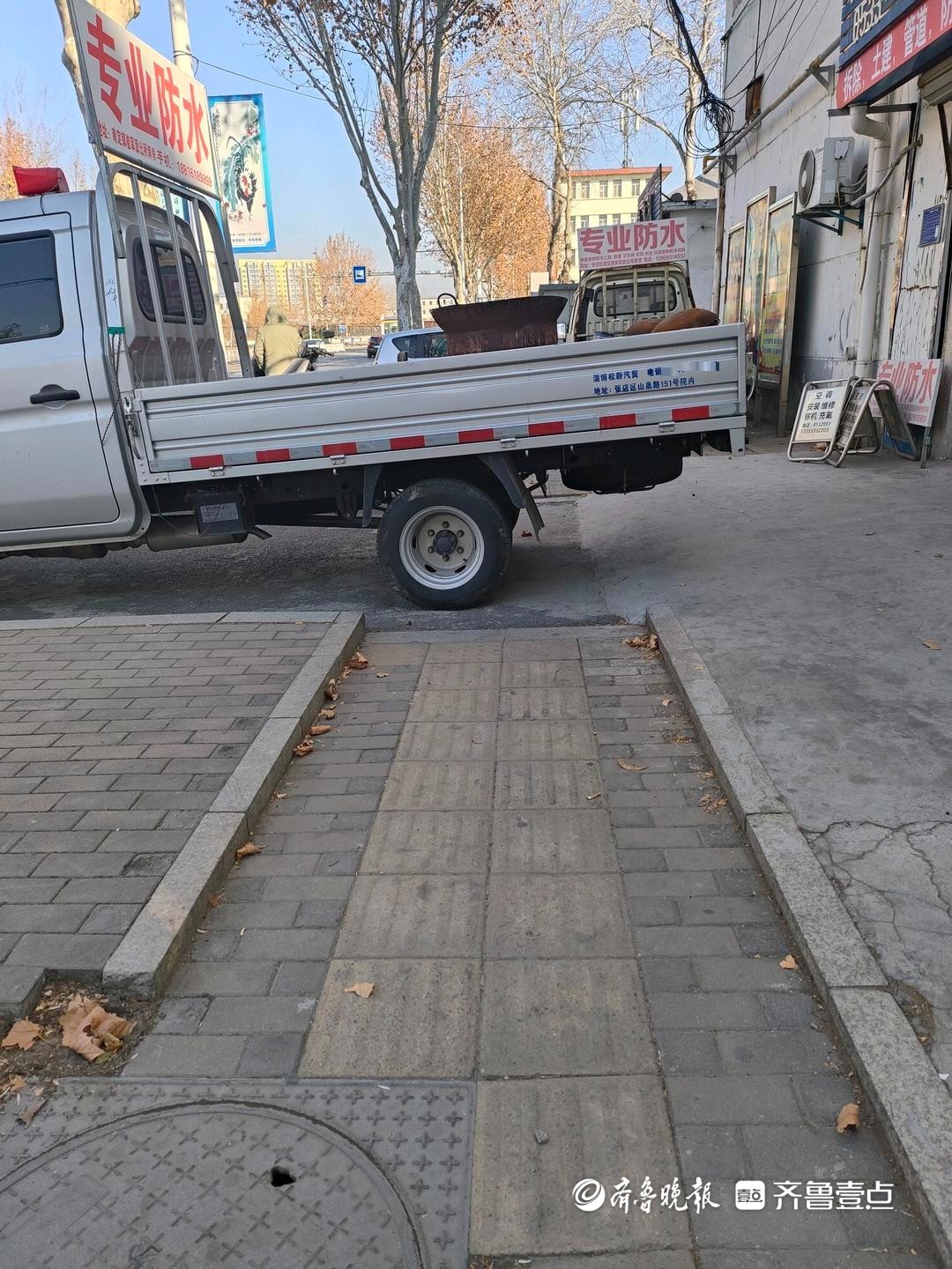 1月9日,情报员“梦江南”向齐鲁晚报官方客户端齐鲁壹点情报站发来报料称,淄博经开区张南路东侧成了“停车场”,人行道被机动车违停占用阻挡,甚至有三轮车直接停在人行道上,不仅阻碍市民通行,还存在一定安全隐患。