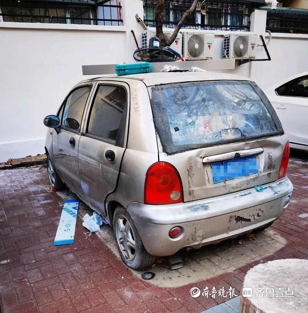 1月9日,情报员“春羊”向齐鲁晚报官方客户端齐鲁壹点情报站发来报料称,济南市市中区七里山南村一区13号楼前存在“僵尸”车辆,车身布满灰尘、车胎干瘪,车顶上放着很多杂物,影响城市整体形象,希望相关部门尽快处理。