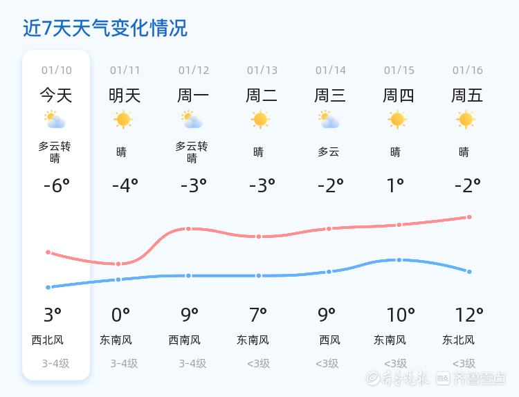 滨州今日多云转晴 最低温-6℃ 明日气温回升