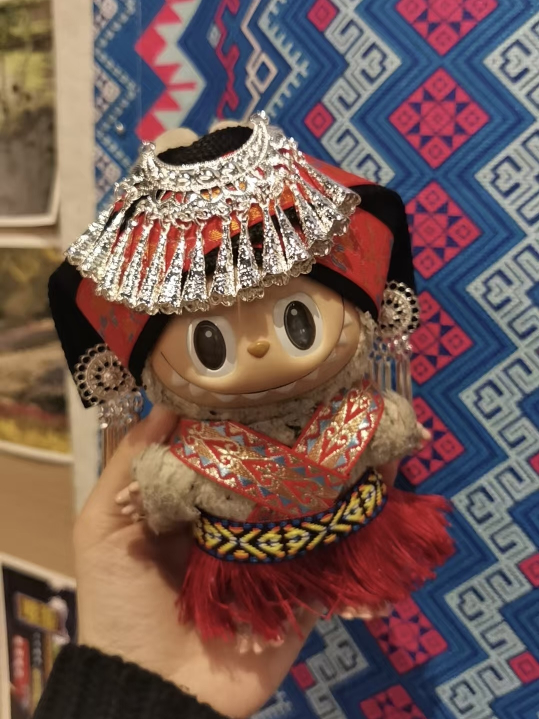 “我们看到穿民族服饰的Labubu玩偶在泰国与穿泰国传统服装的Labubu合影,在悉尼歌剧院前拍照,甚至被赠送给俄罗斯指挥家。”能让民族文化以这种形式走出国门,也让籍颖绮和团队感到非常骄傲。
