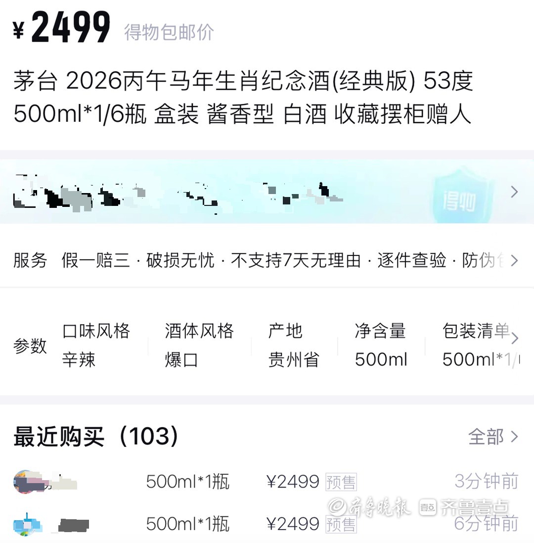 马年生肖茅台连日“上线即售罄”,济南市场价格一路上涨