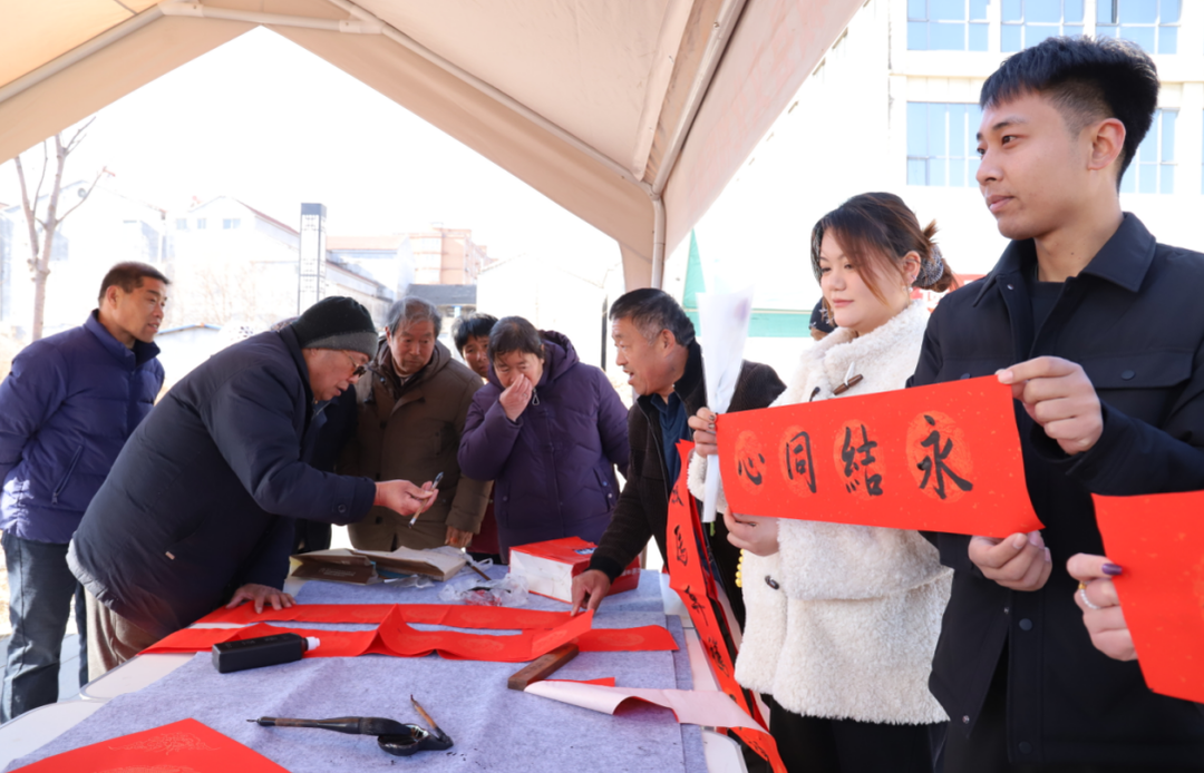 会场一侧的黄河大集与非遗展区,成为青年们的热门打卡地。风味糕点香气扑鼻,五谷杂粮、时令果蔬等特色农产品琳琅满目,市井间的吆喝声、讨价还价声交织成最鲜活的生活图景;郓城剪纸的精巧别致、传统花糕的灵动可爱、手写春联的喜庆红火,让青年们在互动体验中深深感受着传统文化的深厚底蕴。“既能找对象,又能逛大集、看非遗,这样的相亲大会太对味了!”武安镇网红博主李梦娇一边忙着拍摄短视频一边说道,她打算把现场的见闻和郓城的婚事新办简办新风尚,分享给社交平台上的更多网友。