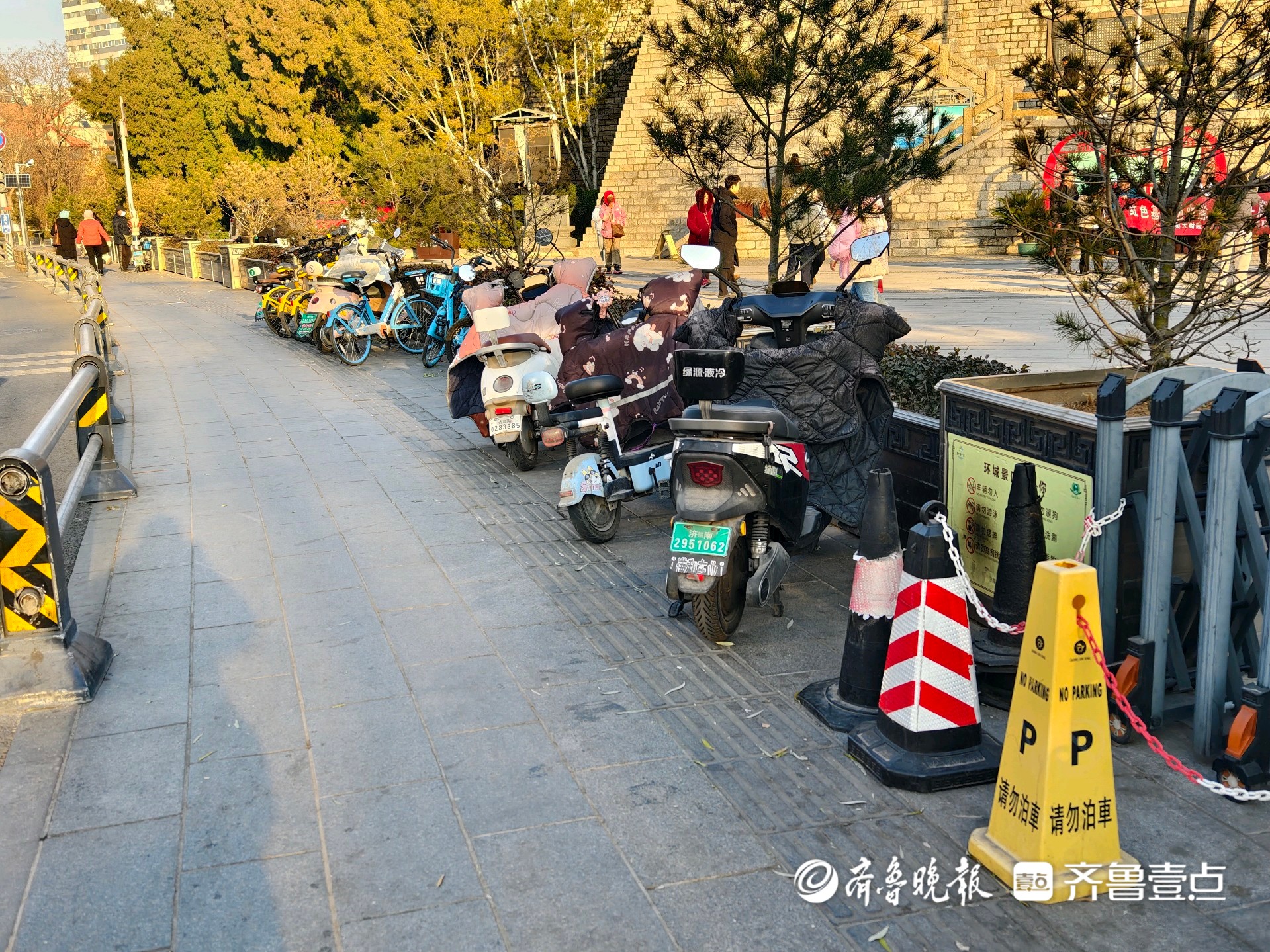 1月10日,情报员“宽心壹点”向齐鲁晚报官方客户端齐鲁壹点情报站报料称,济南解放阁景区周边存在电动车自行车乱停乱放现象,占压人行道,影响景区旅游环境,希望能得到治理,为游客创造一个更加安全畅通和愉悦的游览环境。