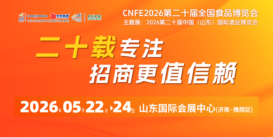 CNFE2026第二十届全国食品博览会暨山东酒博会,将于2026年5月22-24日在济南市山东国际会展中心举办。