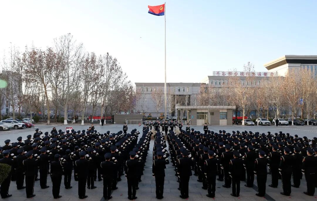 “向中国人民警察警旗,敬礼!”伴随着激昂奋进的《中国人民警察警歌》旋律,鲜艳的警旗沐浴朝阳徐徐升起,全体民警向警旗庄严敬礼,齐声高唱,唱响人民警察的初心使命和忠诚担当。