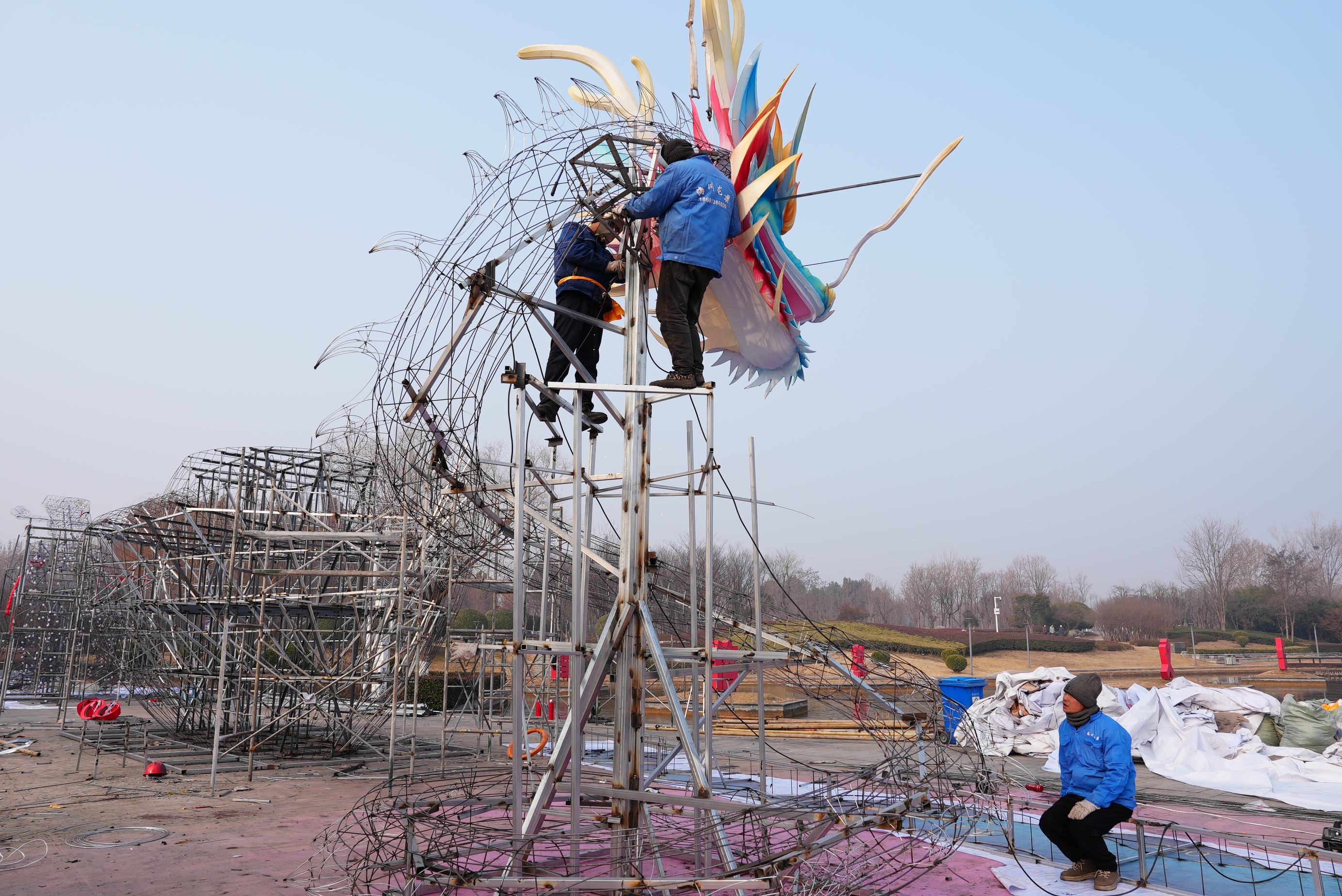 2026济宁太白湖新春灯会将于1月24日点亮太白湖景区。这几天,来自四川自贡的120多名彩灯工匠正在景区内赶制彩灯。从端庄大方高18米的《文成公主》,到小可盈尺的文创灯饰;从吟诗作赋的李白,到一步一景暗藏巧思的红墙灯景。彩灯工匠们从简到繁,经过设计、美工放样、钳工焊接、装灯、裱糊裱布、美工处理、安装等多个环节,力求每一道工序精益求精,短短45天时间里,将传统与创新相结合,用10万盏彩灯在16万平方米的场地编织出璀璨震撼的光影世界。