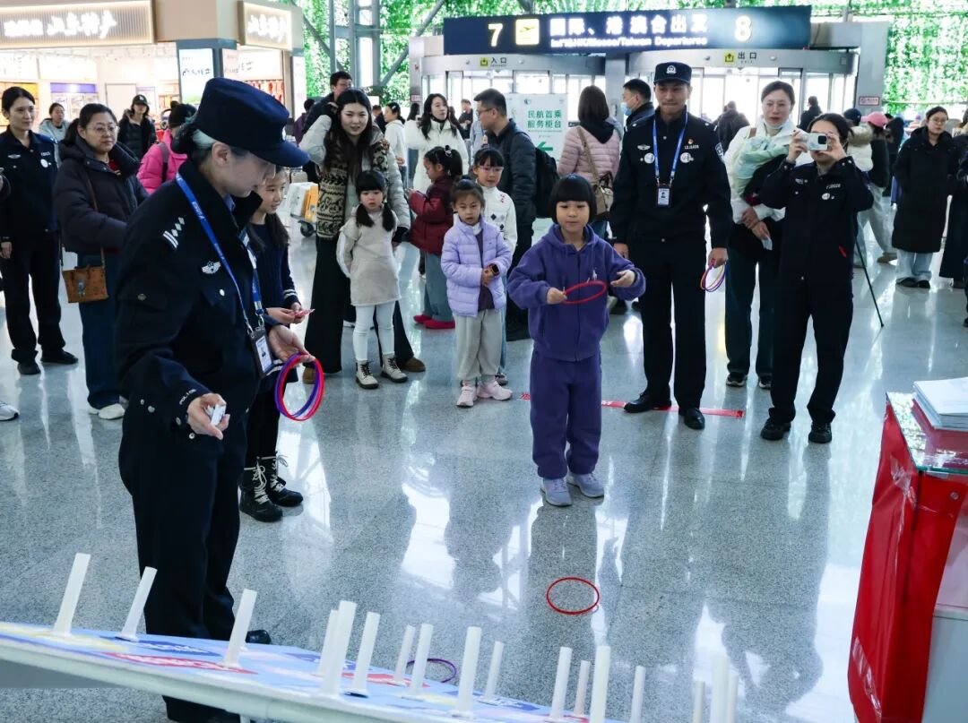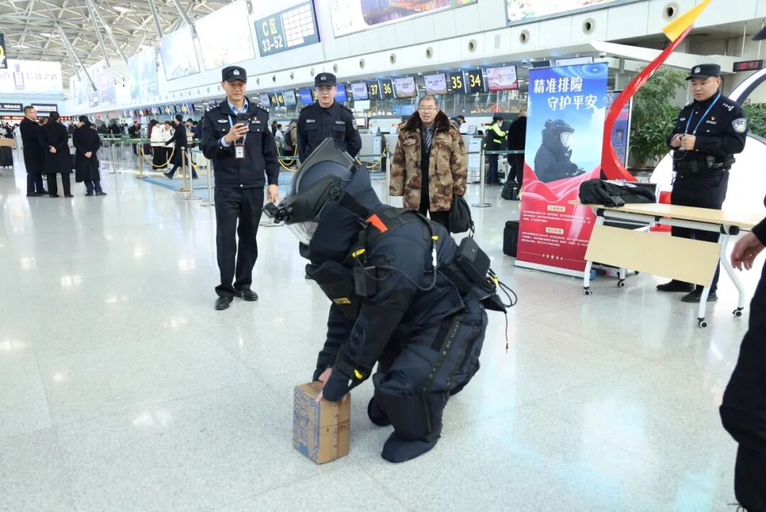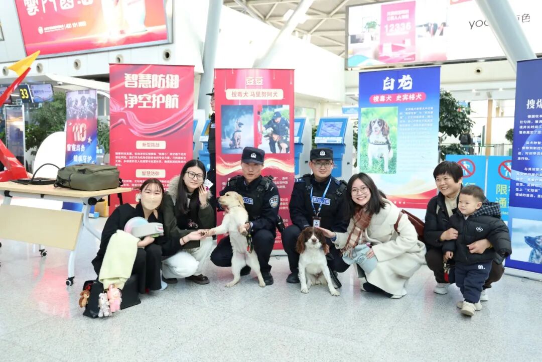 1月9日,在第六个中国人民警察节前夕,机场公安局直属分局候机楼派出所联动分局特巡警大队、警犬技术大队在航站楼开展警民互动活动。活动现场,警犬“小派”“白龙”凭借敏锐嗅觉精准完成指令动作,率先点燃现场氛围,引得旅客们驻足围观。“警察叔叔,你们巡逻时警犬会跟着吗?”“长大后我也要当警察!”孩子们围着民警和警犬不停抛出一句句童真追问,现场浸润着暖暖的烟火气。在警用装备展演区,排爆机器人、排爆服、铠甲、手铐、防弹盾牌等装备有序摆放,民警用通俗易懂的语言讲解着每件装备的性能和用途,旅客们听得兴趣盎然、直呼“涨知识”,纷纷拍照打卡,定格这场“硬核科普”的精彩瞬间。同时,聚焦民航安全与群众法治意识,民警结合“禁止携带禁运物品乘机”“依法整治机闹行为”等工作重点,制作普法展板,设置“答题闯关”趣味环节,旅客答对即可抽取印有“山东机场公安”专属IP形象和标语的“平安盲盒”,1000余份宣传资料、600余份小奖品引导旅客在轻松互动中了解法律知识,为空港安全筑起一道温暖而坚实的屏障。