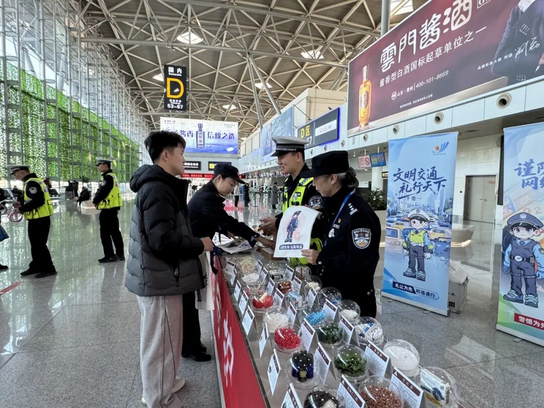 同时,围绕《中华人民共和国刑法》《中华人民共和国治安管理处罚法》《中华人民共和国道路交通安全法》《民用无人驾驶航空器公共安全管理办法》等法律法规开展专题宣传,现场气氛活跃,群众参与积极。“机票退改要小心,诈骗陷阱常光临;陌生信息别轻信,官方渠道去问询;索要密码验证码,绝对肯定是诈骗;屏幕共享更别搞,隐私财产都难保......”民警结合典型案例向旅客讲解机票退改签诈骗的常见套路和防范对策,累计发放宣传资料1100余份、各类小奖品1200余份,帮助旅客提高防范意识和法律意识,自觉尊法、学法、守法、用法。