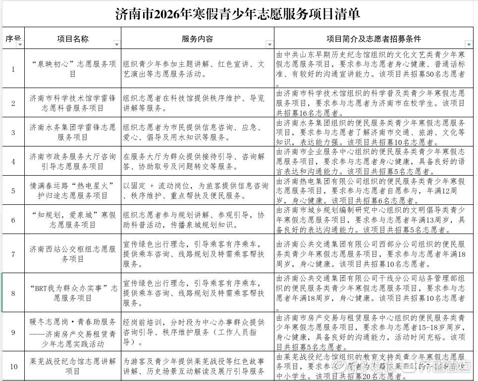 济南招募寒假青少年志愿者啦!210个精品项目等你来!