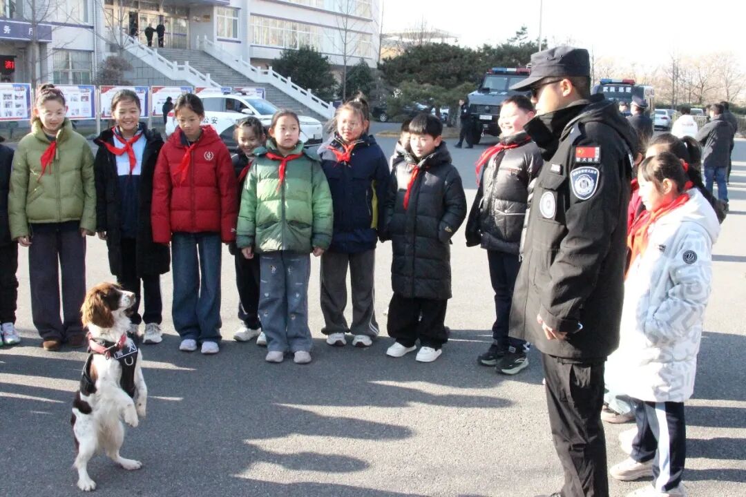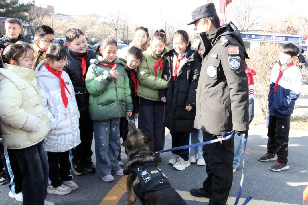 系列活动中,文化路派出所邀请辖区小学生走进警营,孩子们满怀好奇地亲手触摸警用车辆、手铐、警棍等专业警务装备,民警则耐心细致地讲解装备的用途与使用方法,让孩子们轻松掌握 “硬核” 警务知识。现场设置的模拟报警环节备受欢迎,民警亲自示范正确报警流程,手把手指导小朋友拿起模拟电话,清晰说明 “事发地点、事件经过、人员情况”,使其在沉浸式体验中掌握关键时刻的自救求助技能。 “警犬伙伴” 亮相环节,更是点燃了现场大小朋友的热情,威风凛凛的警犬依次展示坐卧、随行、追踪等专业技能,赢得阵阵欢呼。民警还现场揭秘,警犬在执行任务时,如何凭借敏锐的嗅觉和超强的执行力协助民警抓捕嫌疑人、维护社会治安,让大家对警犬的工作有了更深入的了解。
