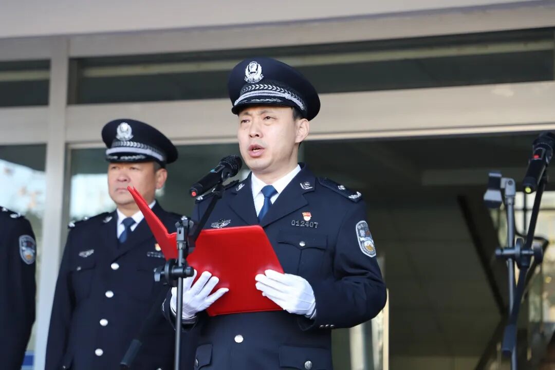 警旗引领方向,誓言迸发力量。为庆祝第六个“中国人民警察节”,进一步增强民警职业荣誉感、自豪感、归属感,1月8日上午,分局举行向警旗宣誓活动。钢城区副区长,钢城分局党委书记、局长王玉山出席活动并讲话,党委副书记、政委曲鹏,在家局领导,各室队所主要负责同志、民警代表参加活动。