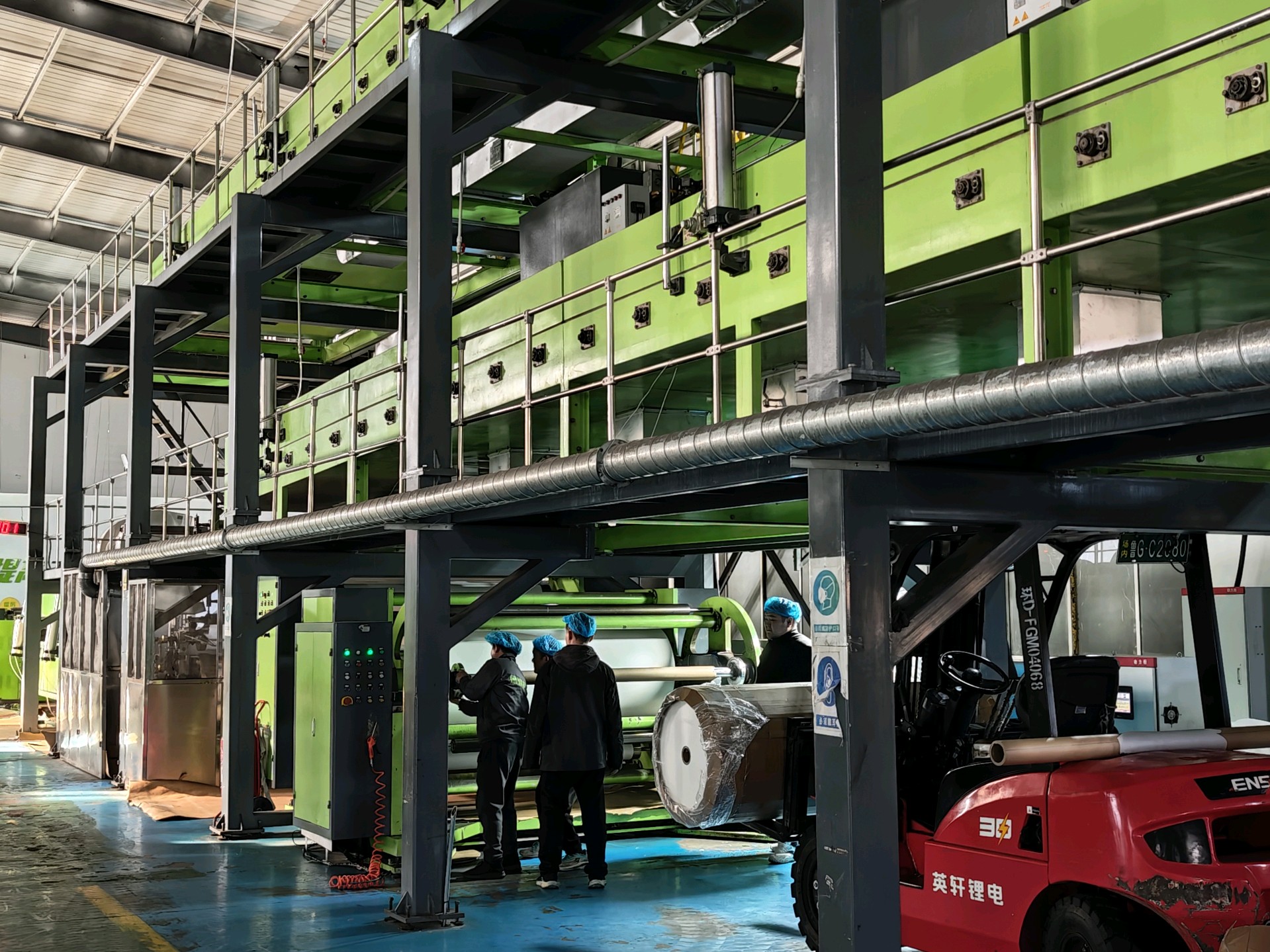 走进昌乐县乔官镇德润绿建复合材料有限公司的生产车间,机器轰鸣作响,生产线高速运转,一派热火朝天的繁忙景象。工人们精神饱满,在各自岗位上娴熟地操作,从原料投放、产品检测到打包入库,每个环节都有条不紊,全力保障订单按期交付。