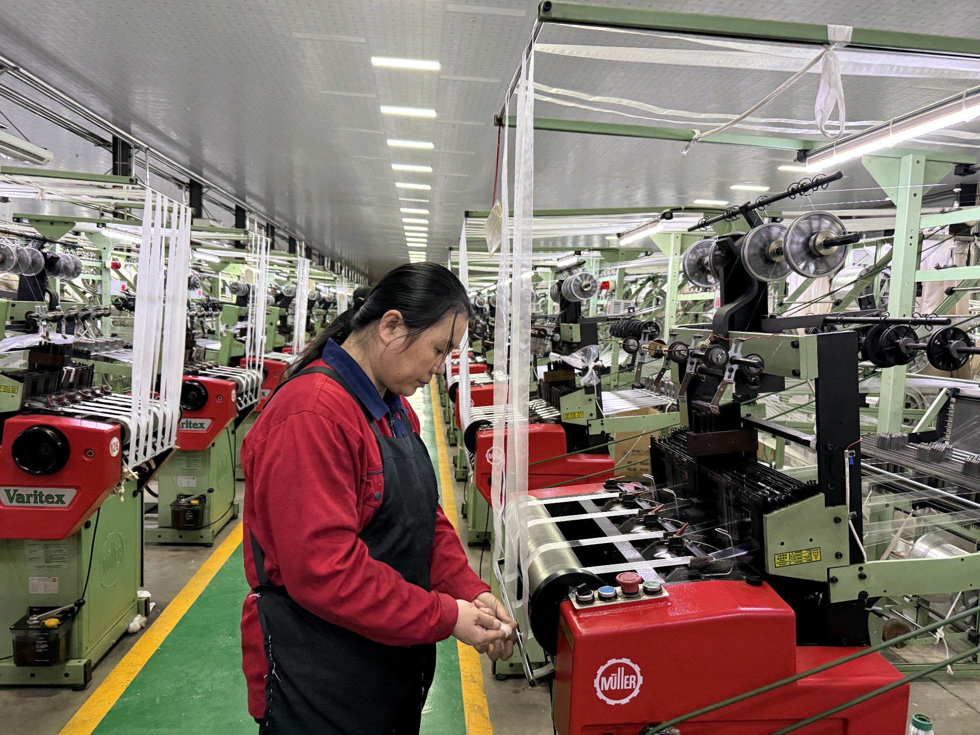 “元旦假期,车间生产‘不打烊’,一线员工全员在岗在位,全力以赴投入生产,确保产品保质、保量、准时交付。1月5日,我们顺利发出新年第一单彩带,产量达100万米左右。”潍坊新东方彩带有限公司总经理李伟伟说道,目前公司订单已排至今年2月份,涵盖彩带及蝴蝶结、头饰等深加工制品。“在保障400台织带机、10条染色线、150台盘码机稳定运转的同时,公司安全员定期开展设备安全隐患排查整治,为冲刺首季‘开门红’筑牢安全防线。”