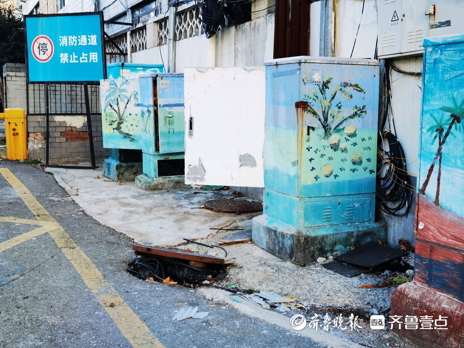 ”今天在市中区建设路一公司大门口看到的,不仅路边上的井盖翘着,露出里面的线缆,旁边的设备箱有的敞着门,有的线缆挂在外面,不仅影响市容市貌,也存在一定的安全隐患。希望有关部门及时处理一下,消除安全隐患。”情报员说。