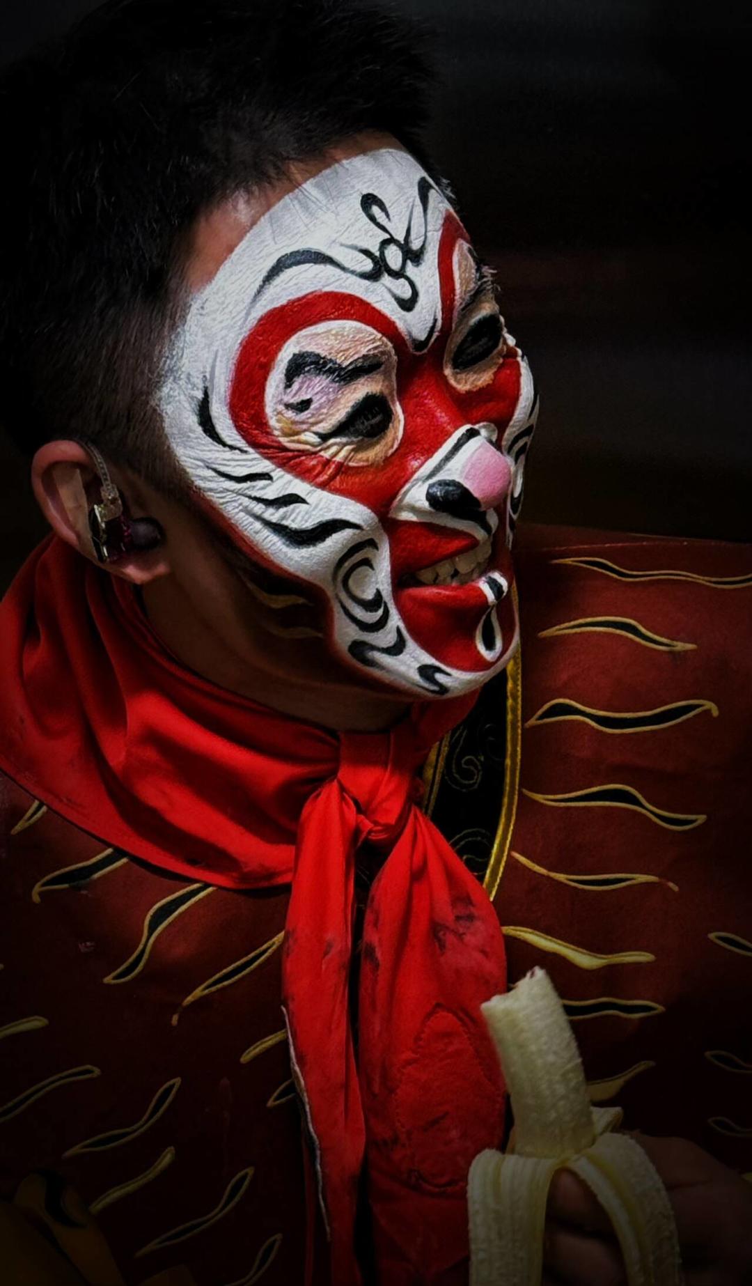 “当时虽然说石家庄离保定不远,开车路途两三个小时,但是家里就这一个儿子,父母也是舍不得。我们当时练基本功,要求脚尖够鼻子,男的女的都得抓下腰,有时候放假回去了,父母也心疼我,抱着我哭,坚持过来也就好了。”1998年,时增帅开始接触京剧;2006年,他接触到纣棍。“我们所有的技巧都是通过练戏来学习的,当时跟天津京剧院胡小毛老师学习的《盗甲》,刚开始由于年龄小、腰腹力量不够,连动作都完成不了。那时候年纪小,也不讲究吃完饭歇会什么的,就是跟同学比着练,特别有干劲。”毕业后,时增帅加入福建京剧院,成为该团的一名青年武丑演员。在青岛工作期间,时增帅继续精进技艺,参与了多项重要演出活动,并在2025年被评为“青岛拔尖人才”,是青岛唯一的大攀纣棍传承人。