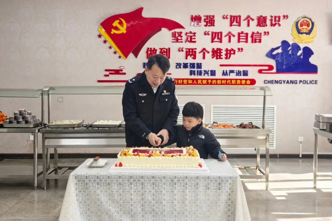 在第六个中国人民警察节到来之际,城阳公安将暖警爱警举措落到实处,精心定制节日蛋糕,庆祝属于人民警察自 己的节日。一块块精致的蛋糕,传递的是组织的温暖与关怀;一张张灿烂的笑脸,展现的是民警辅警们内心的喜悦与自豪。在这个特殊的日子里,大家不仅感受到了节日的欢乐,更深刻体会到了作为一名人民警察的荣耀与责任。