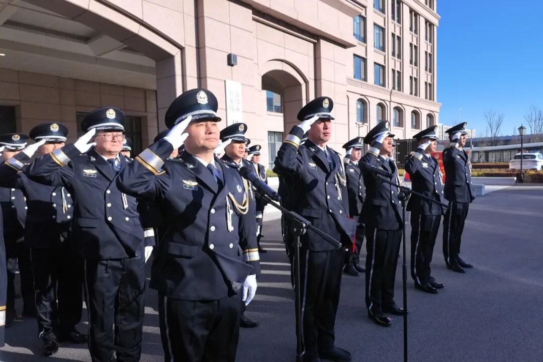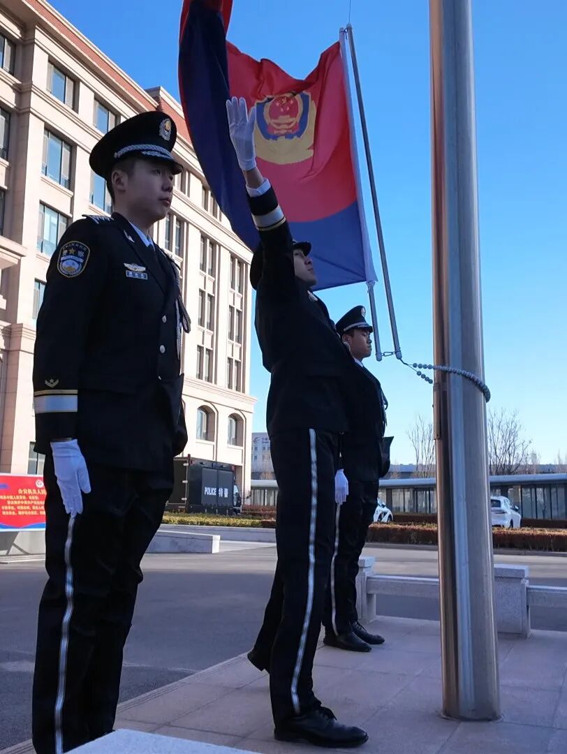 2026年1月10日,为热烈庆祝第六个中国人民警察节,青岛机场公安局举行升警旗仪式,50余名党员干部、民警代表参加仪式。