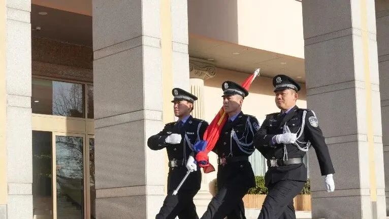上午8时30分,仪仗队员迈着整齐划一、铿锵有力的步伐,护卫警旗入场。在激昂雄壮的《中国人民警察警歌》声中,全体人员警容严整、庄严肃穆,以饱满的热情注视警旗冉冉升起、迎风飘扬。