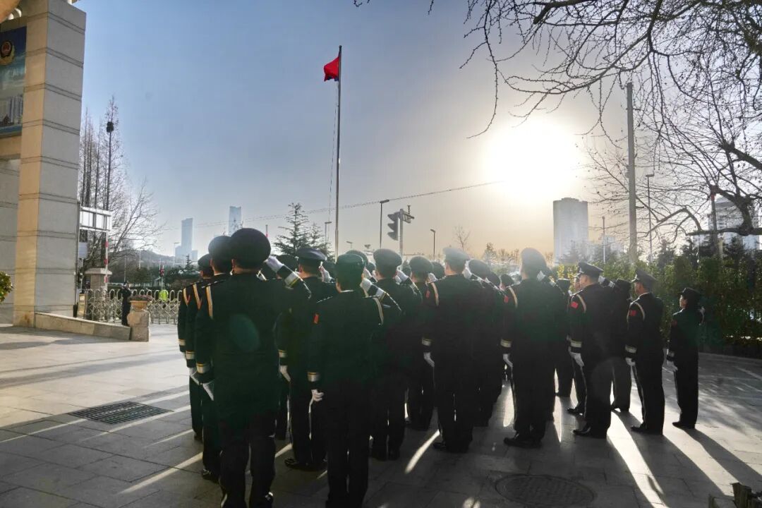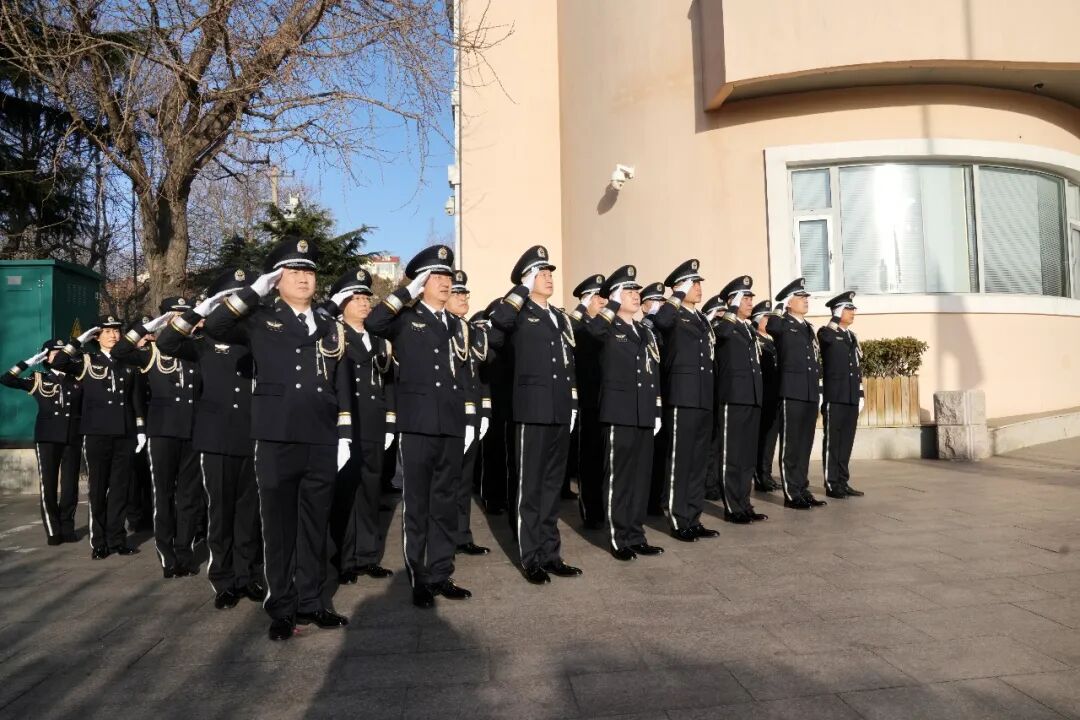 1月10日,青岛市公安局市南分局举行庆祝第六个中国人民警察节升警旗仪式,副区长、分局党委书记、局长方建辉,分局党委副书记、政委杨长涛和其他局领导参加仪式。