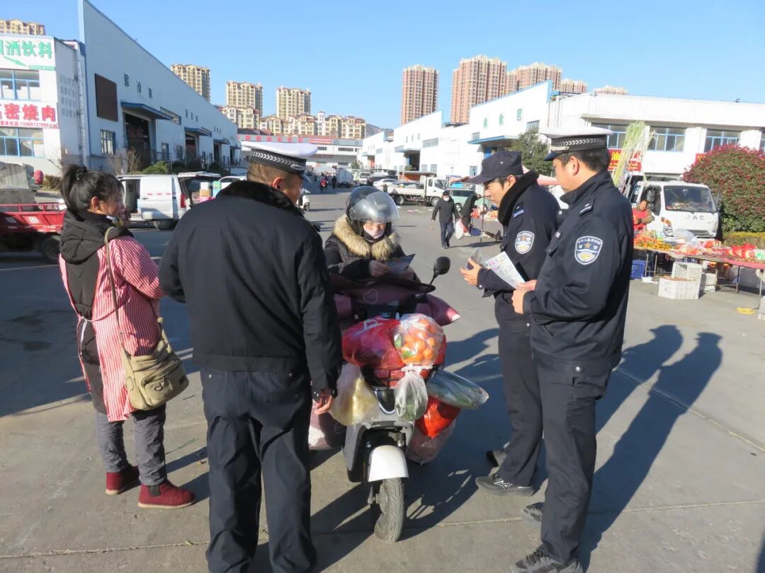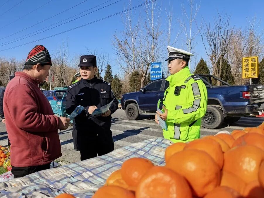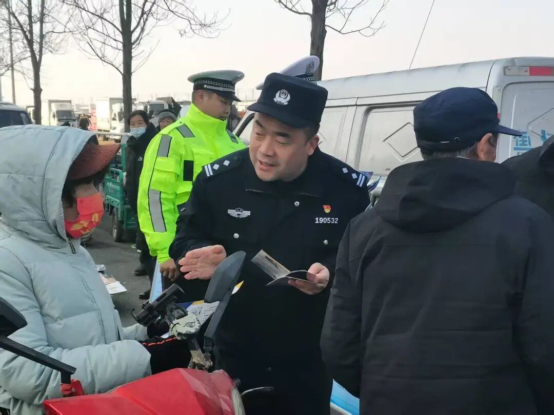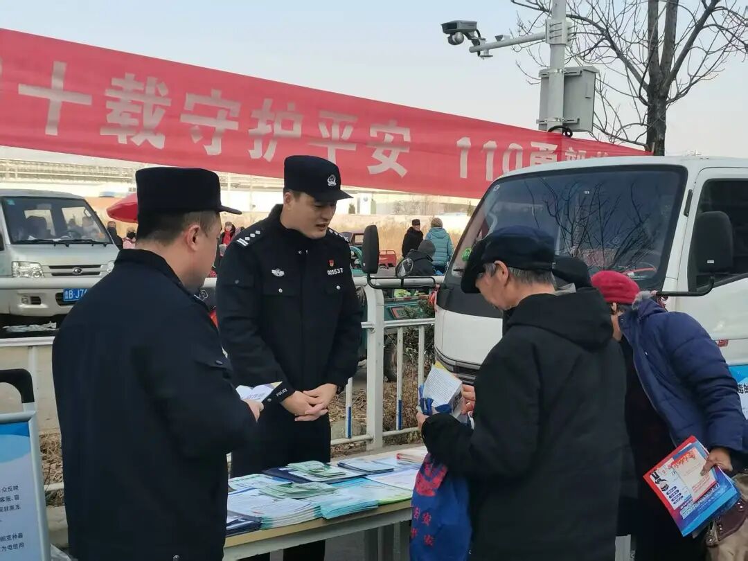 1月7日,珠海派出所联合交管大队七中队深入辖区孟家庄大集开展“四十载守护平安 110勇毅前行”警察节主题宣传活动。