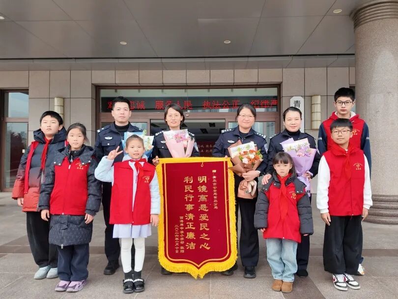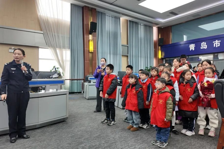 1月4日,黄岛分局迎来一批特殊访客——西海岸中学小学部志愿服务队。孩子们带着锦旗和鲜花走进警营,开展警察节慰问活动,向守护辖区平安的民警致以诚挚敬意。