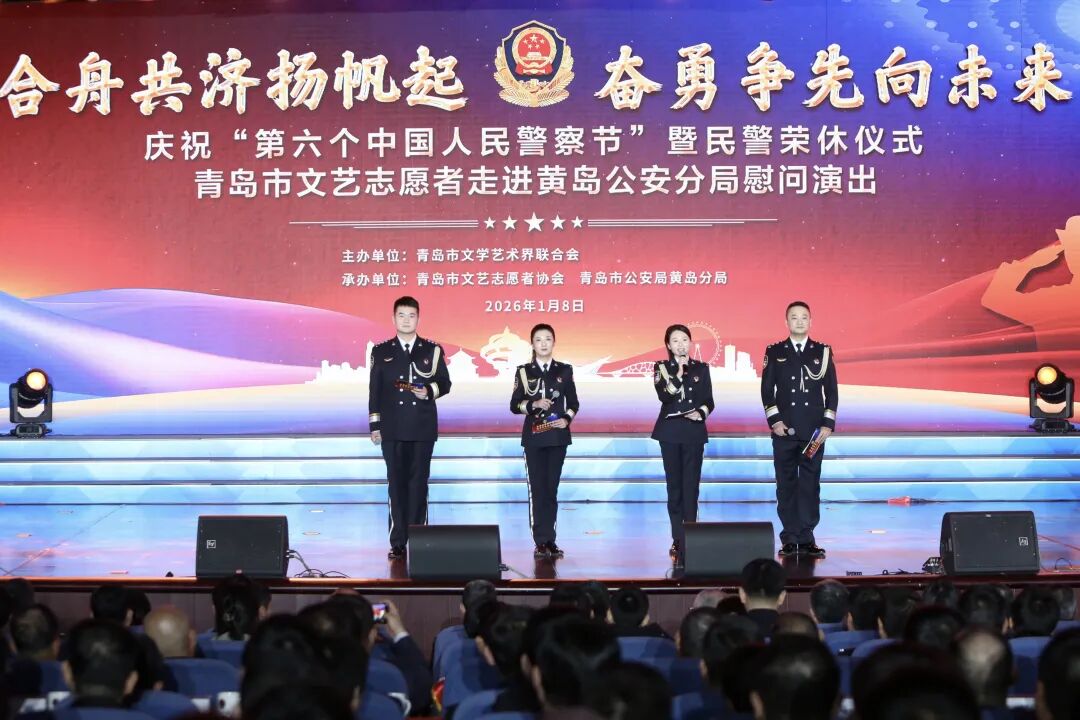 1月8日,青岛市文艺志愿者走进黄岛公安分局隆重举办庆祝“第六个中国人民警察节”,暨民警荣休慰问演出活动。