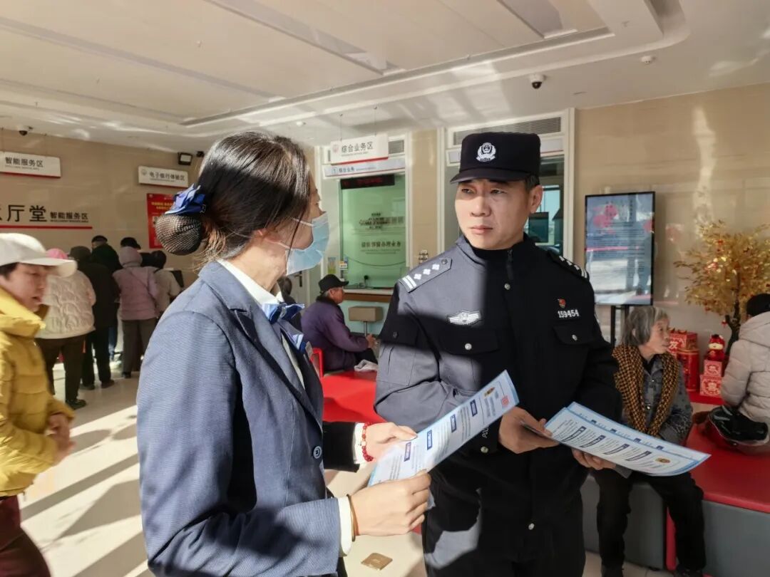 1月8日,宝山派出所联合交管大队二中队走进宝山大集和宝山农商银行开展交通安全与反诈宣传活动,庆祝警察节的到来。