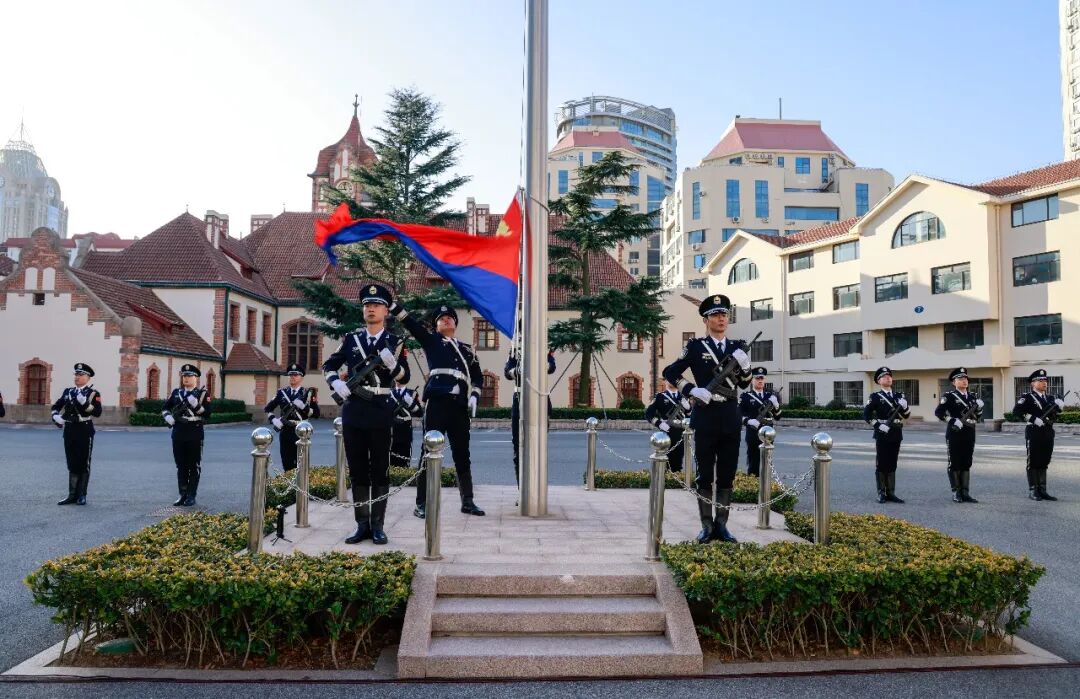 警旗飘扬映初心,誓言铮铮担使命。为热烈庆祝第六个中国人民警察节,进一步坚定从警信念、铸牢忠诚警魂,激励广大民警辅警以更加昂扬的斗志、饱满的热情履行好新时代公安使命任务,1月10日上午,青岛市公安局举行庆祝第六个中国人民警察节升警旗仪式。副市长,市局党委书记、局长于瑞波出席仪式,市局党委委员、副局长、政治部主任郭晓晖主持仪式,在家市局领导参加仪式。