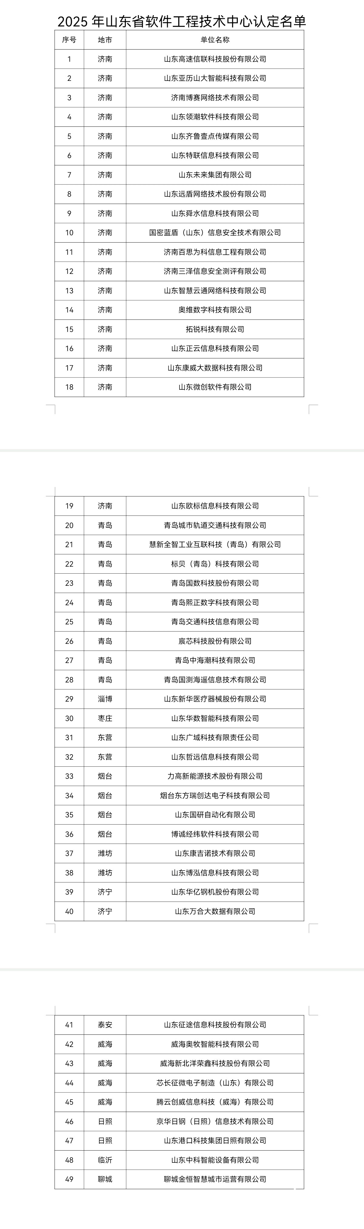依托企业为主体建设软件工程技术中心,是突出企业科技创新主体地位、系统提升软件行业创新能力的重要举措。记者从省工信厅了解到,经企业申报、各市审核推荐、专家评审和网上公示,山东高速信联科技股份有限公司等49家企业被认定为2025年山东省软件工程技术中心,浪潮通用软件有限公司等104家原中心(2022年认定批次)保留资格,一并予以公布。