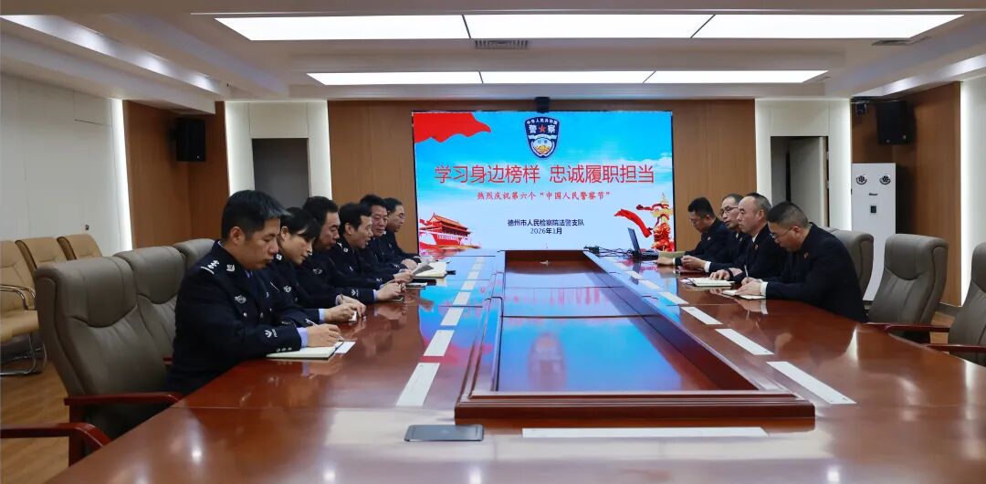 1月9日,德州市人民检察院法警支队举办“学习身边榜样 忠诚履职担当”主题活动,庆祝第六个“中国人民警察节”。庆祝活动与主题党日深度融合,以学习榜样、共话担当的特殊形式,凝聚奋进力量,彰显检察机关司法警察忠诚担当本色。