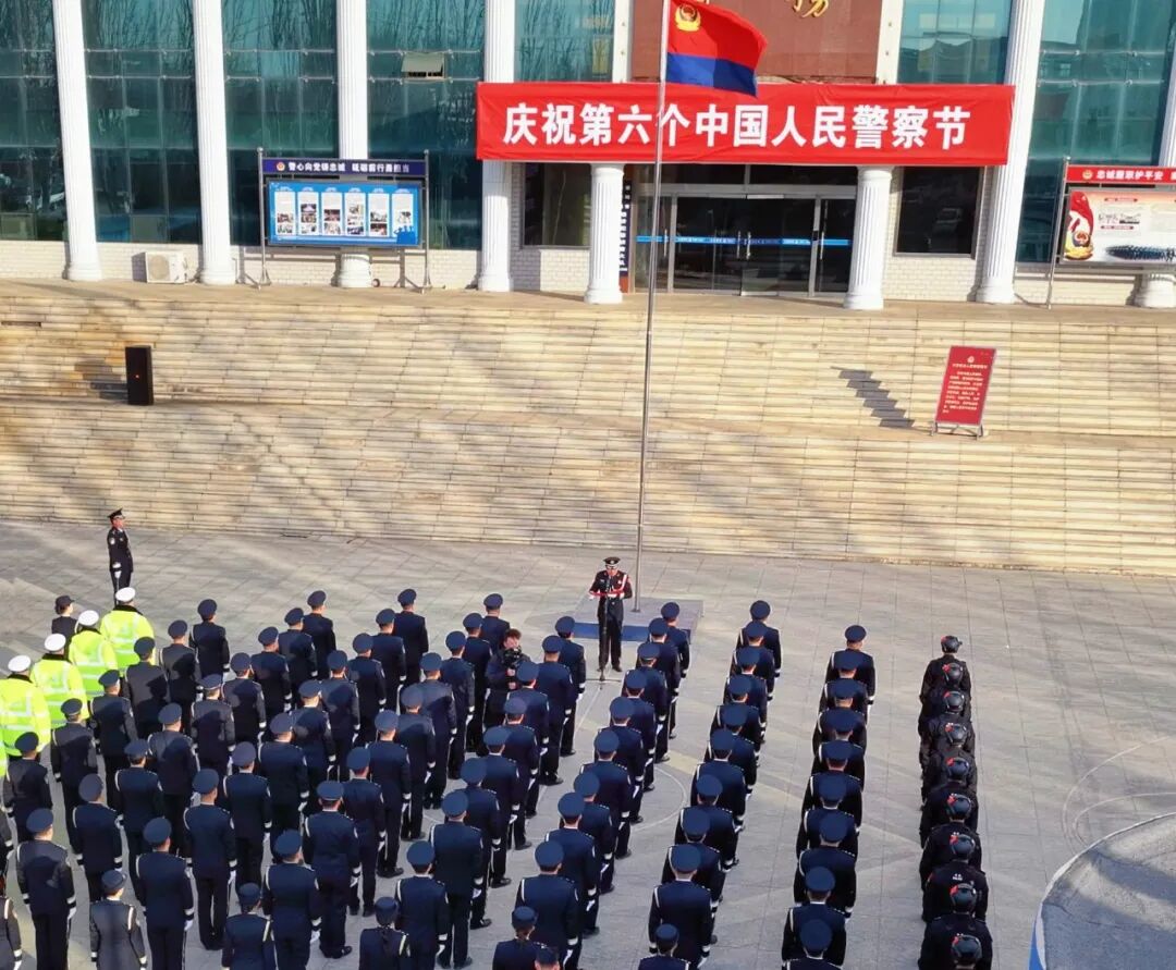 莱阳市公安局举行庆祝第六个中国人民警察节升警旗仪式