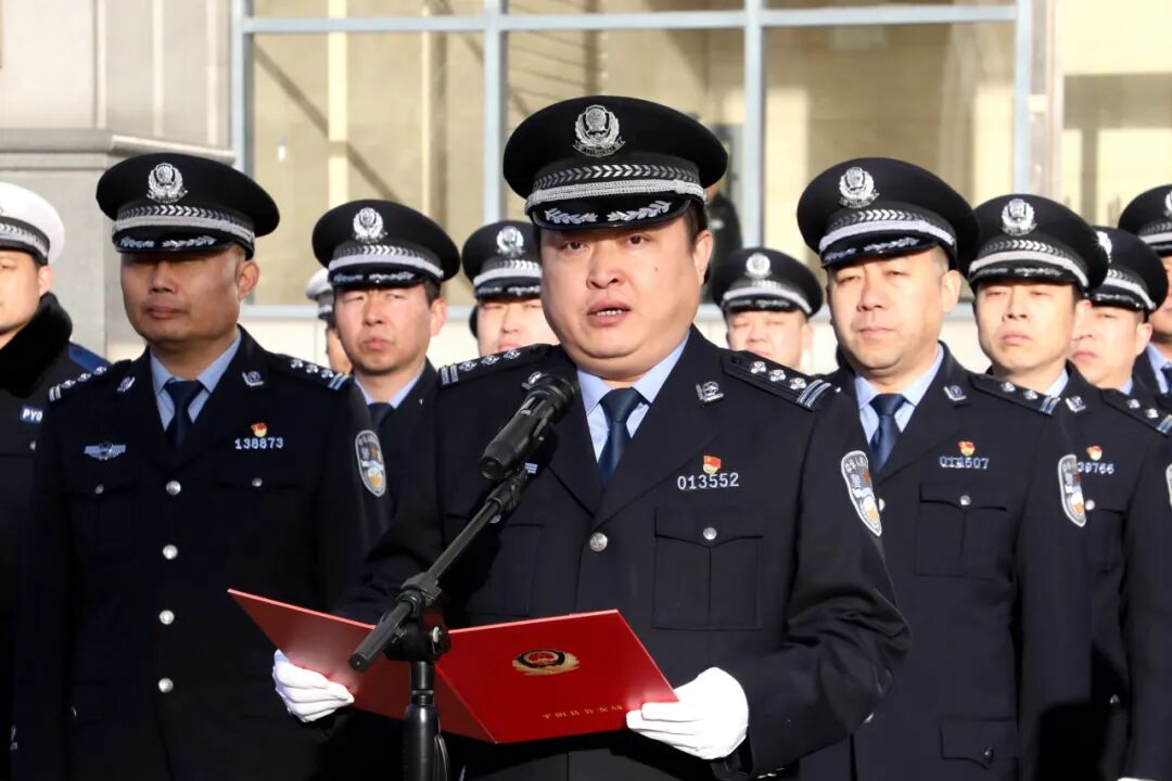 旗帜指引方向,誓词凝聚力量。新的一年,全县公安机关将不忘初心、牢记使命,永葆忠诚本色,擦亮为民底色,绘就最美“警色”,把荣耀与忠诚,凝聚成打击犯罪、守护平安的钢铁力量;把奉献与坚守,淬炼成服务群众、护航发展的不竭动力;以更加昂扬的斗志、更加过硬的本领,坚决履行好党和人民赋予的新时代使命任务,为加快实现“六个跨越”、建设现代平阴作出新的更大贡献!