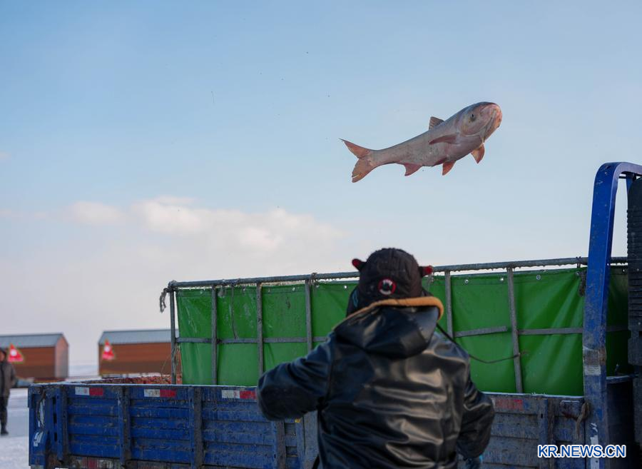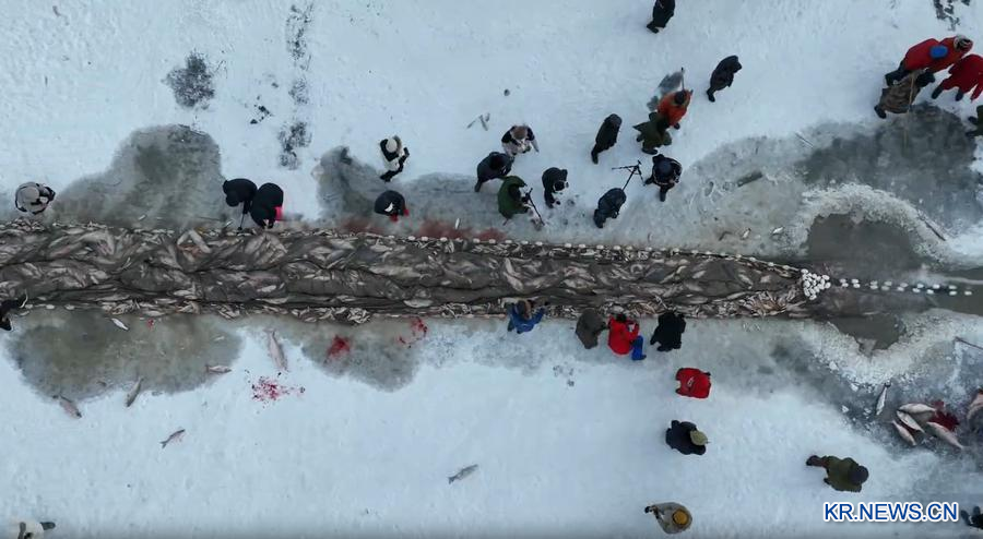 [신화망 창춘 1월10일] 영하 20도 날씨의 지린(吉林)성 쑹위안(松原)시 차간후(查干湖)의 얼어붙은 호수 위에서 얼음 깨는 소리가 울려 퍼지고 물고기들이 얼음 조각과 함께 수면 위로 솟구친다. 고기잡이와 사냥이 주업이던 중국 동북 지역 어렵민족은 또다시 은빛 비늘이 반짝이는 수확의 계절을 맞이했다.