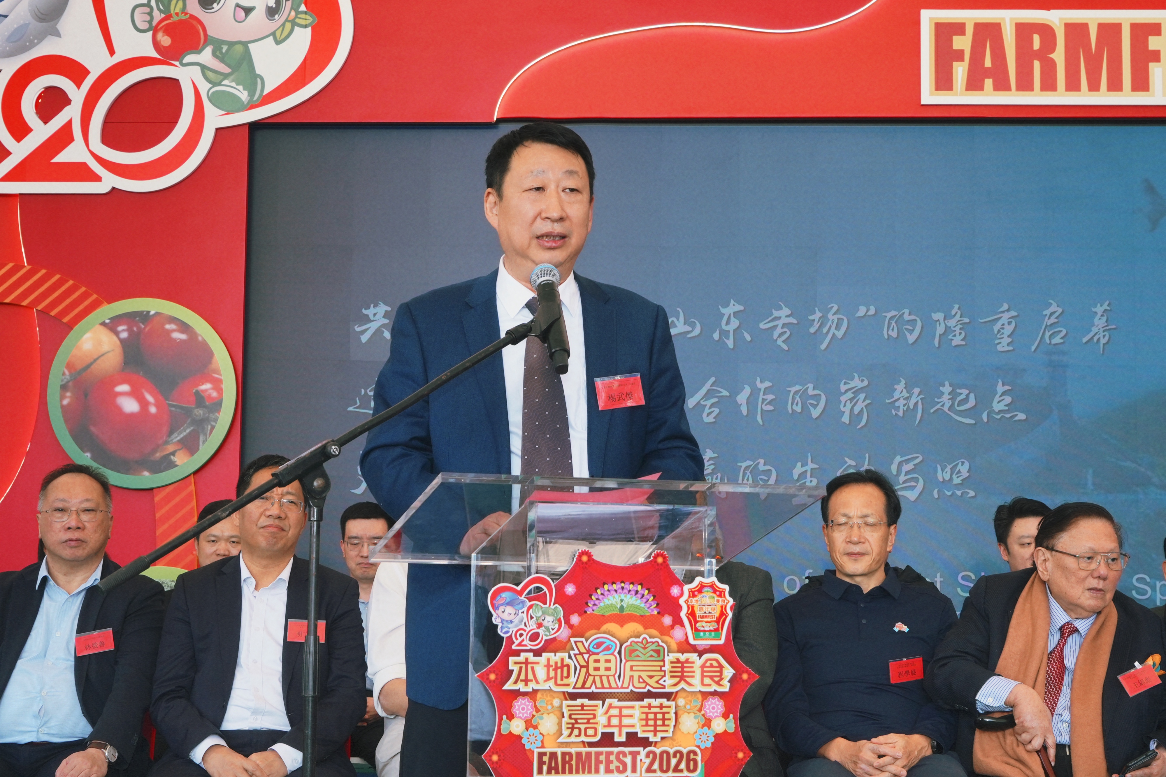 山东省农业农村厅党组成员、副厅长杨武杰在致辞中系统阐述了山东农业的雄厚实力与开放合作姿态。他指出,长期以来山东优质农产品持续丰富香港市民的“菜篮子”“果盘子”,而香港的资源优势也为山东农业转型升级、走向全球提供了宝贵支撑,两地农业合作基础深厚、前景广阔。杨武杰表示,期待将“山东专场”打造为展示齐鲁优特农品的“精品窗口”、将本次嘉年华建设为鲁港农业合作的“双向桥梁”、将香港平台拓展为山东农业融入双循环的“战略支点”。