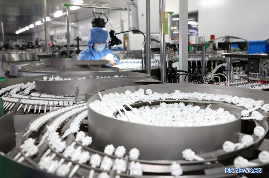 2025년 12월 31일 산둥(山東)성 빈저우(濱州)시 보싱(博興)현 팡자(龐家)진의 한 의료기기 회사에서 생산 작업을 하고 있는 작업자. (사진/신화통신)