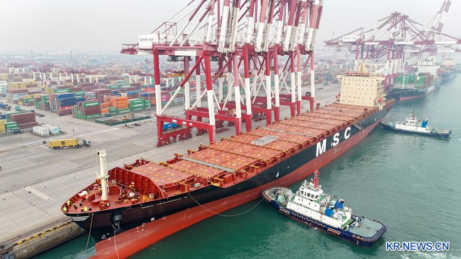 호주 직항 신규 항로로 운항되는 첫 선박이 지난 4일 산둥(山東)항구 칭다오(青島)항에 정박하면서 2026년 첫 대외무역 신규 항로의 정식 개통을 알렸다. (사진/신화통신)