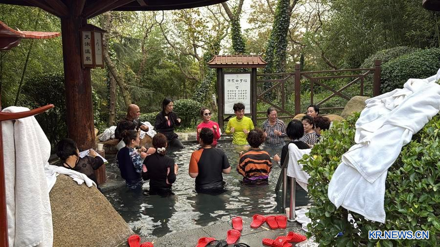 2025년 11월 16일 웨이하이 톈무(天沐) 온천 리조트에서 온천욕을 즐기는 한국 관광객. (사진/신화통신)