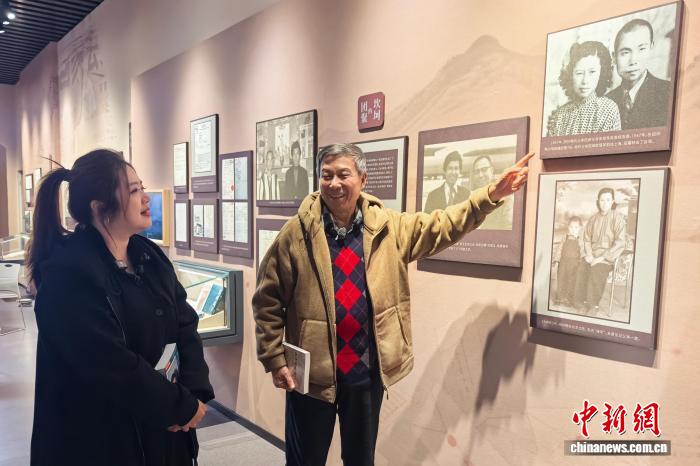 1月9日,台湾青年媒体人翟翾(左)在中国闽台缘博物馆聆听两岸寻亲故事。中新网记者 孙虹 摄