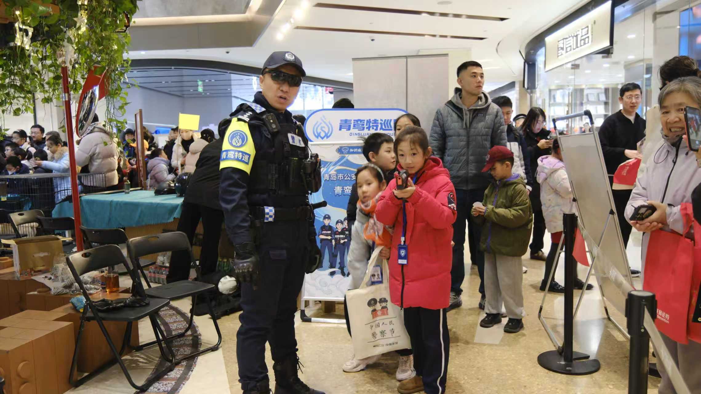 1月10日,青岛公安“四十载守护平安,110勇毅前行”主题宣传暨“冬季守护•平安相伴”主题宣防活动,在海天MALL中心G层及南广场启动。一场零距离的双向奔赴,绘出一幅平安青岛的鲜活画卷。(大众新闻·大众日报记者张忠德)