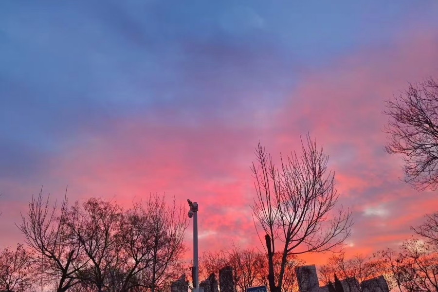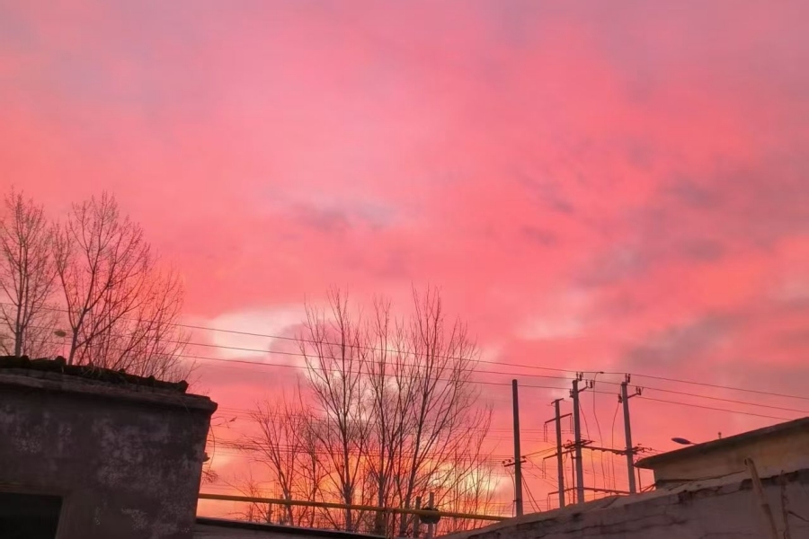 1月9日清晨,绝美的朝霞悄然铺展在聊城上空,粉色与金色交织的霞光将冬日清晨装点得梦幻又治愈。