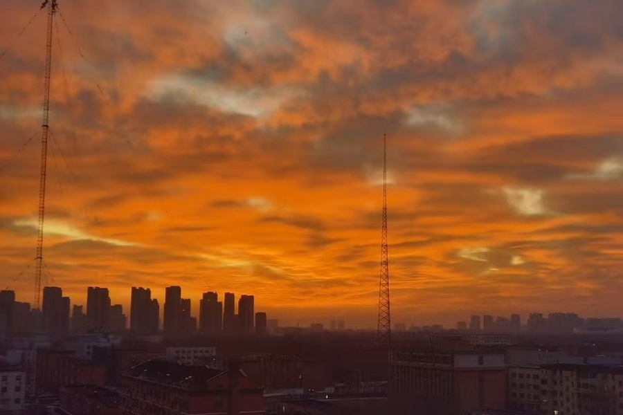 惊艳!聊城天空现绝美朝霞