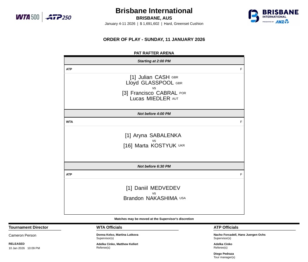 不早于14:00萨巴伦卡 vs 科斯秋克