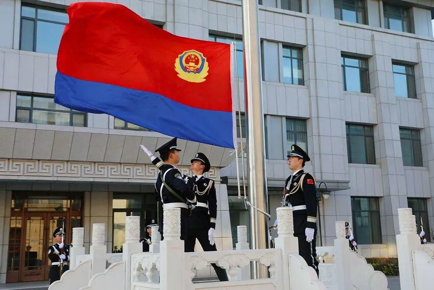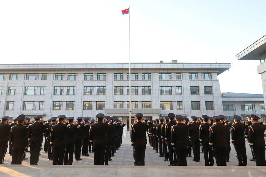 随着《中国人民警察警歌》奏响,警旗冉冉升起,迎风飘扬。全体民警面向警旗庄严敬礼,致敬第六个中国人民警察节,热切表达对党、对祖国、对人民、对公安事业的无限忠诚和无比热爱。