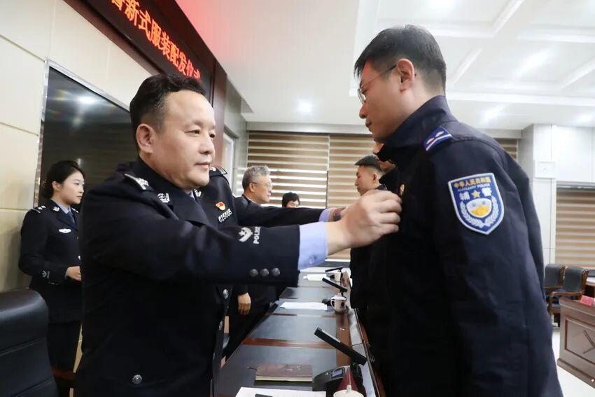 活动中,局领导为辅警代表发放了2025式新式服装。
