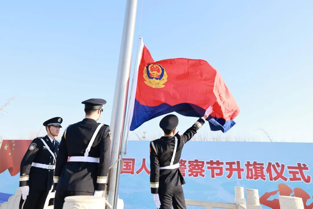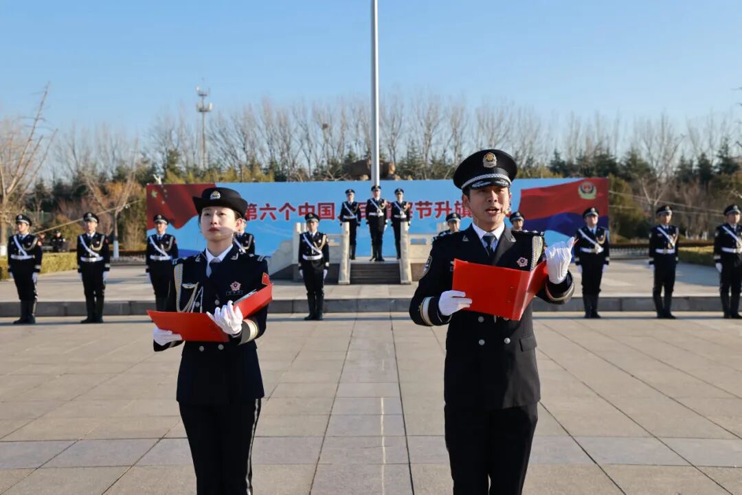 警旗猎猎,红蓝辉映,彰显忠诚与使命;警歌嘹亮,威武雄壮,弘扬正气与担当。1月9日上午9时30分,庆祝第六个中国人民警察节系列活动正式开始。护旗队行进步伐铿锵有力,伴随着昂扬的《中国人民警察警歌》,红蓝相间的警旗冉冉升起、迎风飘扬;参加活动的全体警察整齐列队、警容严整,面向警旗庄严敬礼,重温入警誓词;青年警察作表态发言。大家在铮铮誓言和激昂旋律中,进一步坚定理想信念、砥砺从警初心。