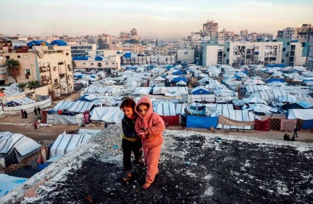 2025年12月22日,在加沙城西部一处临时避难所附近的巴勒斯坦儿童。图/新华社