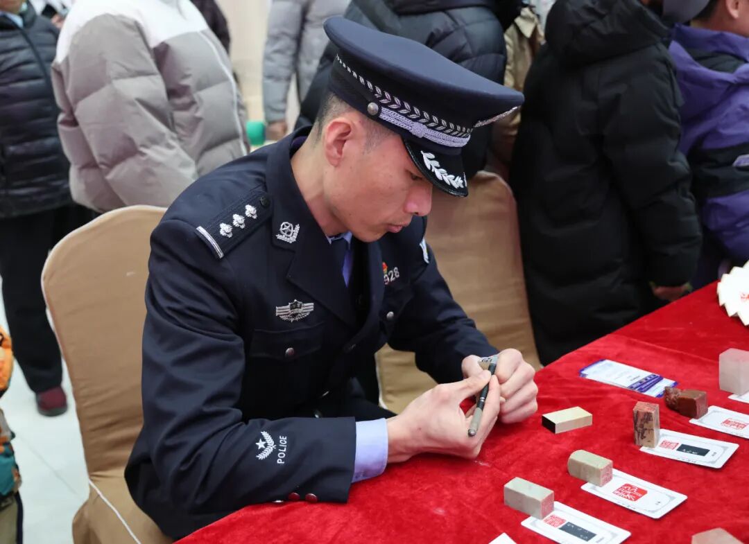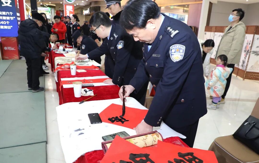 民警还将寓意美好的对联、福字送给市民