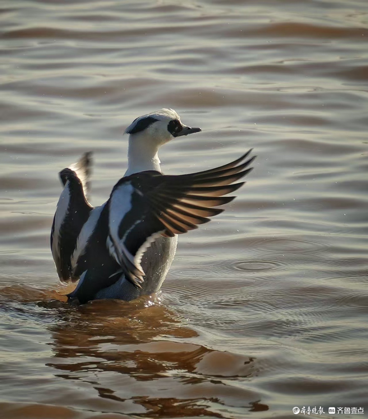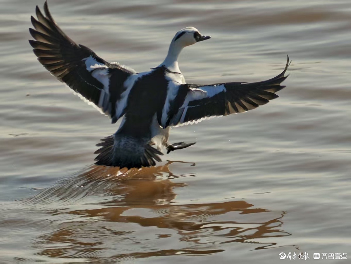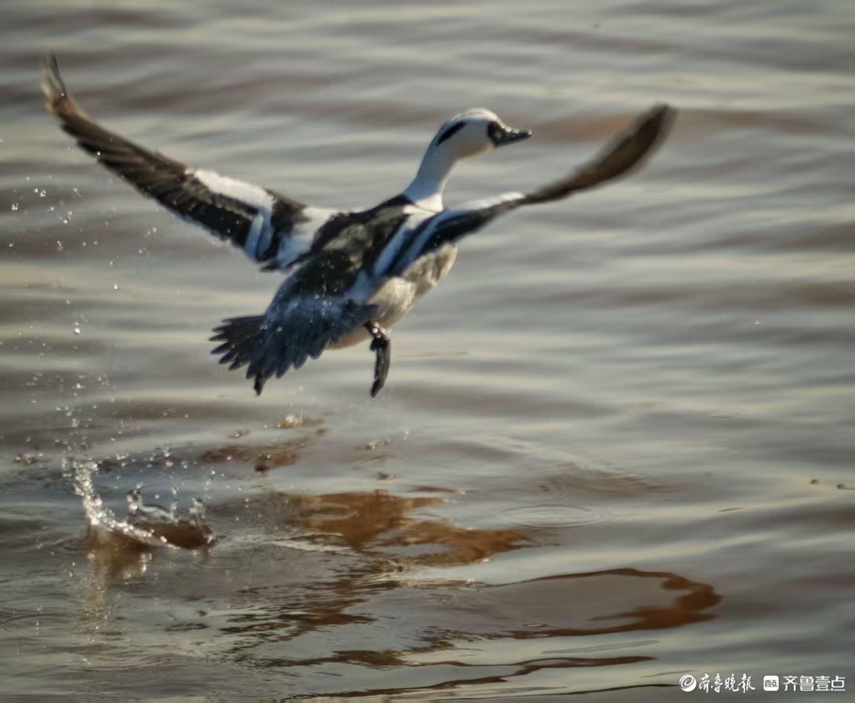 鹊山水库沉沙池,黑白秋沙鸭亮相