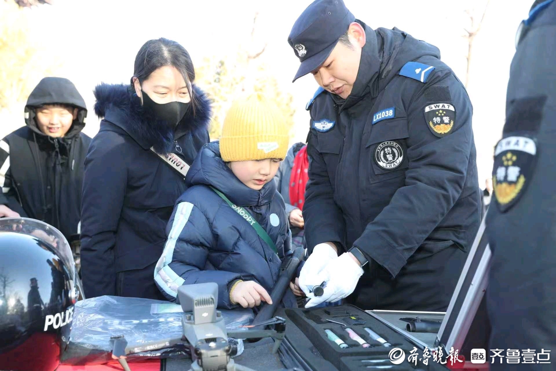1月10日上午,在第六个中国人民警察节来临之际,济南市公安局历下分局在大明湖超然楼广场隆重举办“四十载守护平安 110勇毅前行——庆祝第六个中国人民警察节暨110宣传日”主题宣传活动,全方位展现了历下公安忠诚履职、服务人民的风采,吸引了众多市民群众参与。