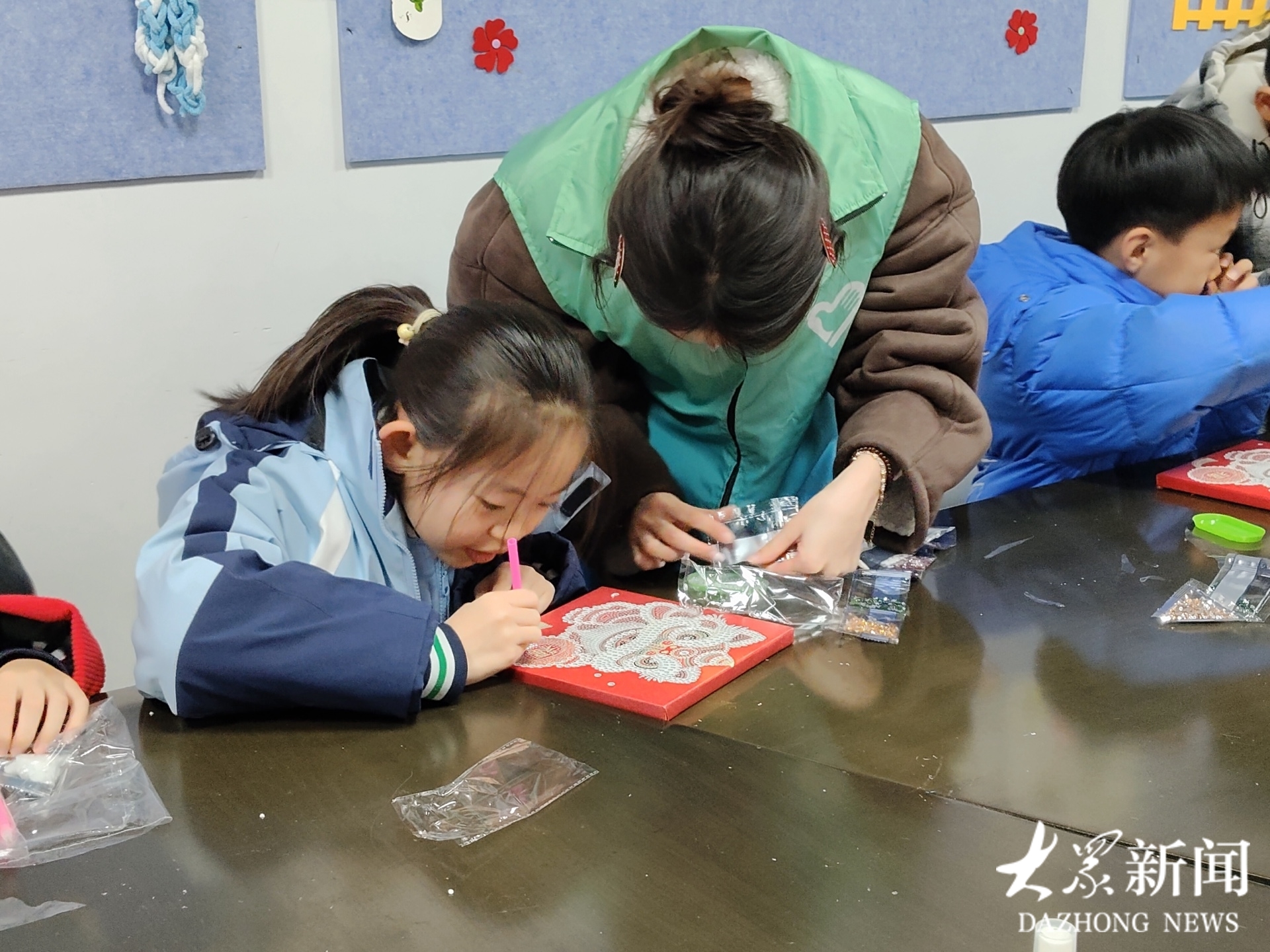 “能把自己学到的手工技巧教给小学生们,看着他们用珍珠拼出可爱的新春图案,我也特别有成就感,这也是我们大学生践行志愿服务精神的一种方式。”参加活动的大学生志愿者说道。